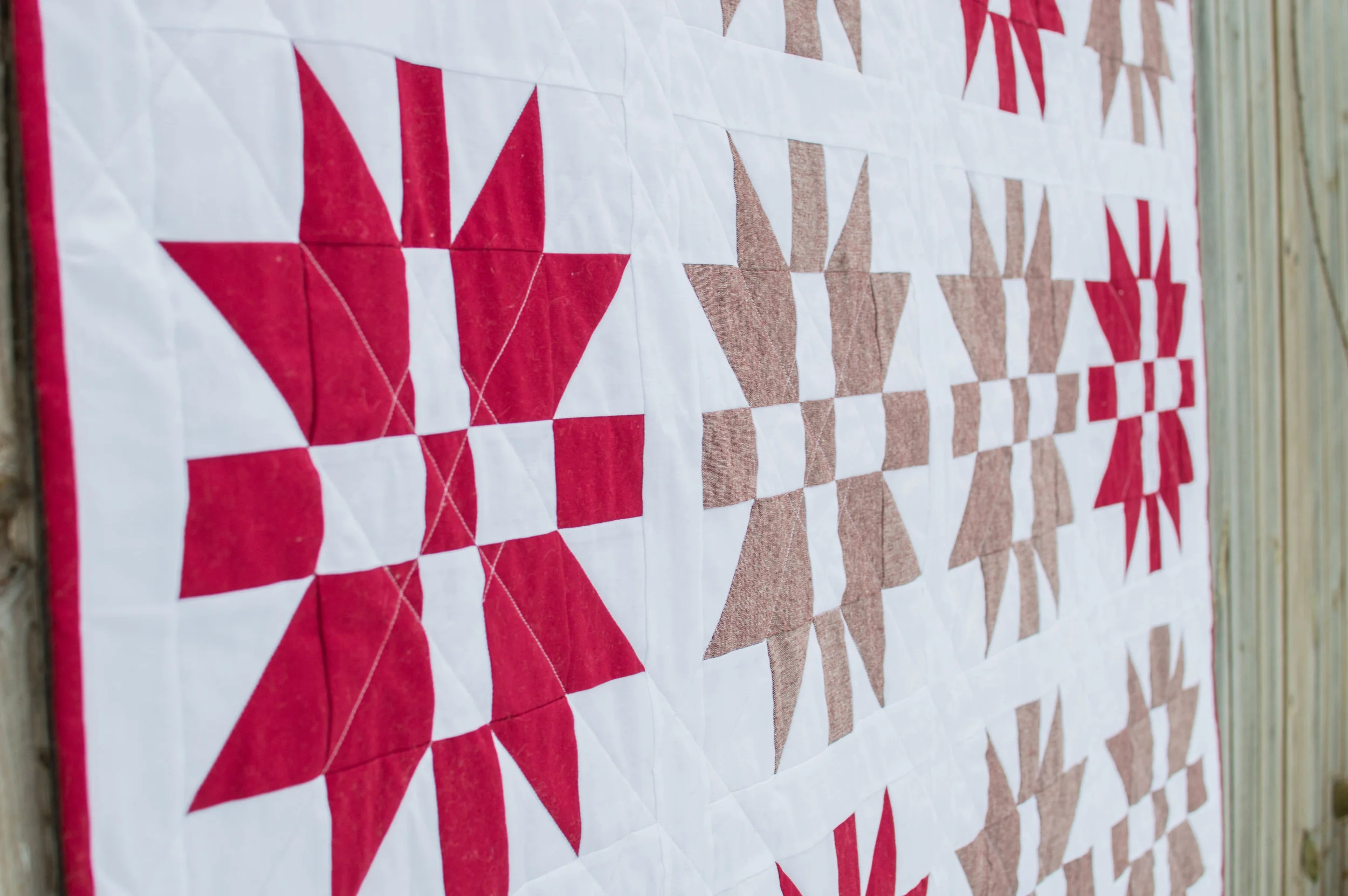 Two quilts went out for Christmas this year, and one, fittingly named "Christmas Joy" by Brittany at Lo and Behold Stitchery, went to my mother in law. I've had the itch to make a classic red and white Christmas quilt ever since I saw this one on pinterest by Temecula Quilt Co. Then Brittany went ahead and did all the math for me, so I had no excuse!
